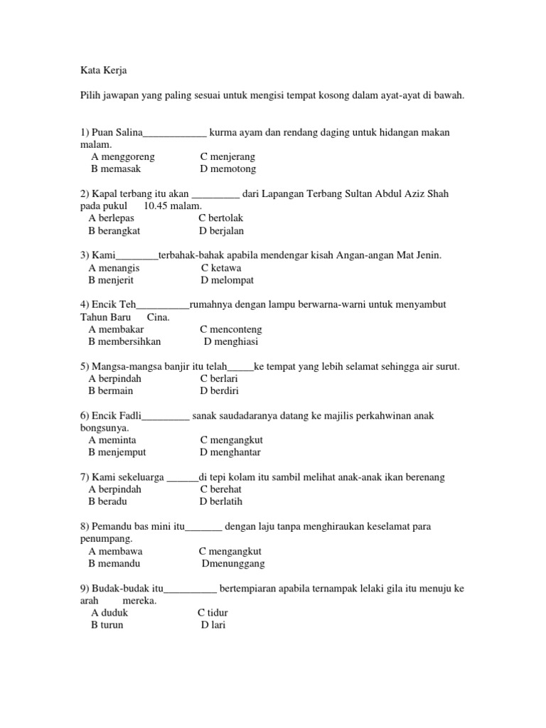 Feb 26 2021 - Kata kerja online worksheet for Tahun 45 6. Golongan kata sendi adalah golongan kata. Latihan kata kerja Pilih jawapan yang paling sesuai untuk mengisi tempat kosong dalam ayat-ayat di.